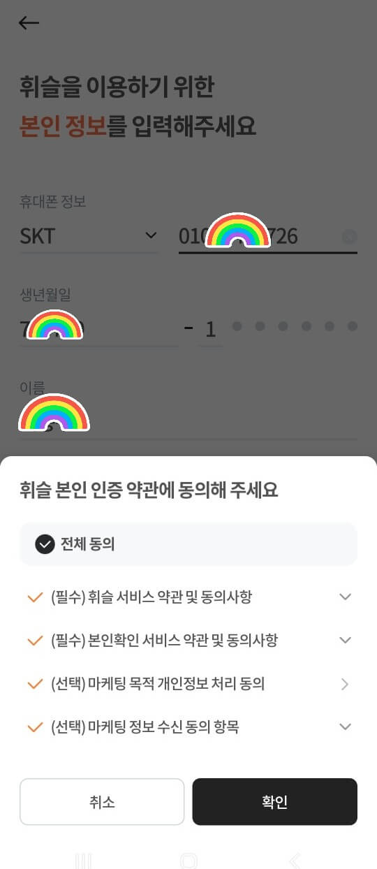 3️⃣ "본인인증약관"에 동의합니다.
