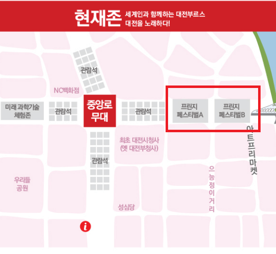 ✅ 프린지 페스티벌 무대는 현재존에 있습니다.