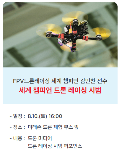 ✅ 8월 9일 18시 블랙이글스 에어쇼를 시작으로 개막행사가 진행되었습니다. 매일 18:00부터 19:30분까지 각 존 일대에서 퍼레이드가 진행됩니다.